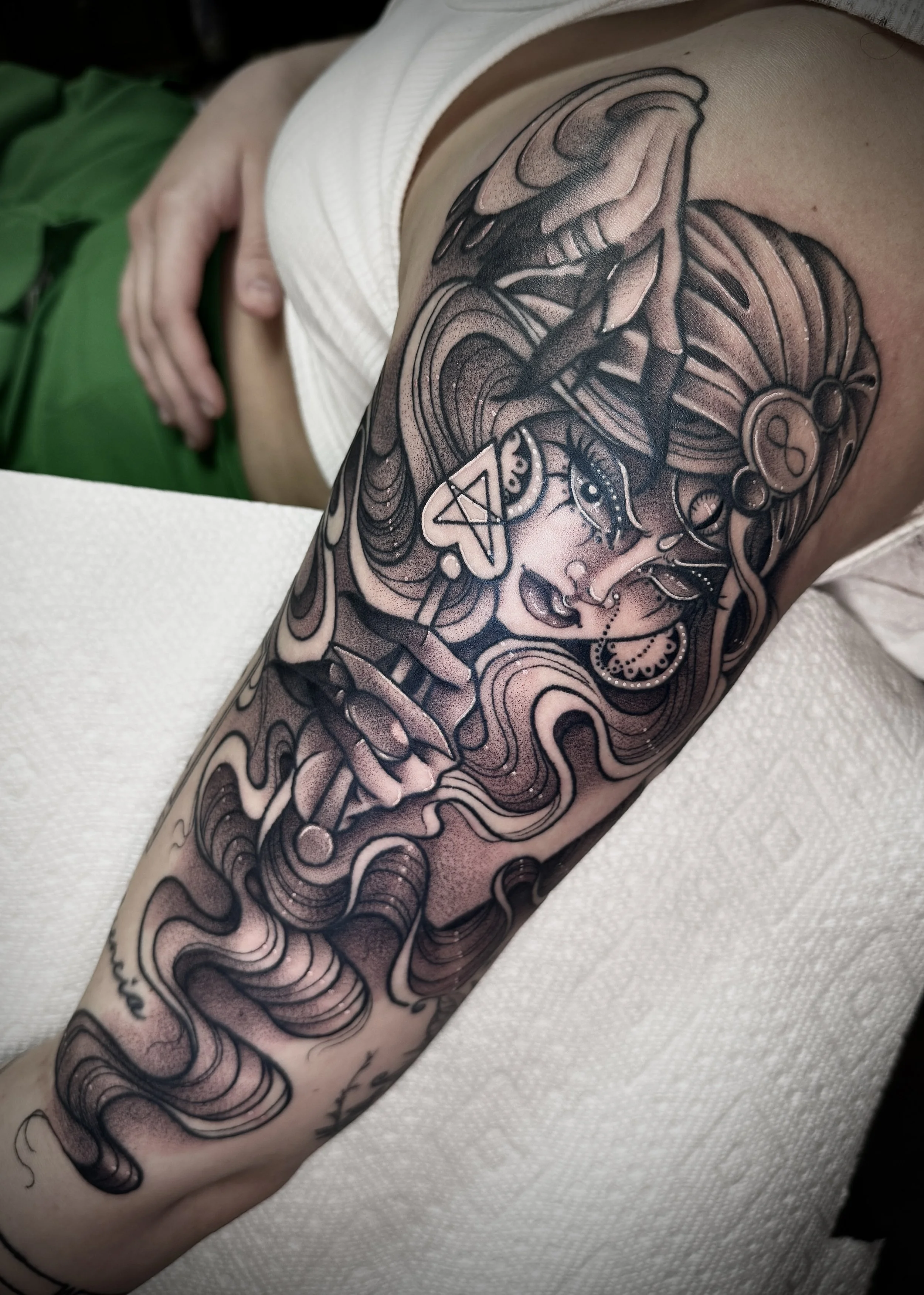 Nicole FrancesHere are some tattoos and artwork from Nicole, but to see much more check Nicole out on Instagram @the_nixie_pixie or @lovecrafttattoo or at NixiePixie.ink